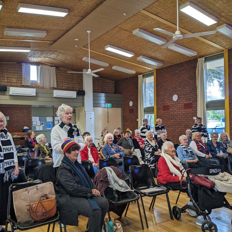 BELOW - It turned out that a majority of our members supported the Collingwood Football Club, but there were a few disappointed Geelong supporters too! Thanks to everyone for wearing their club colours and joining in the festivities.
